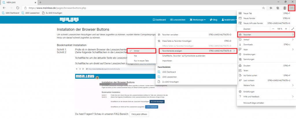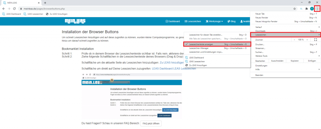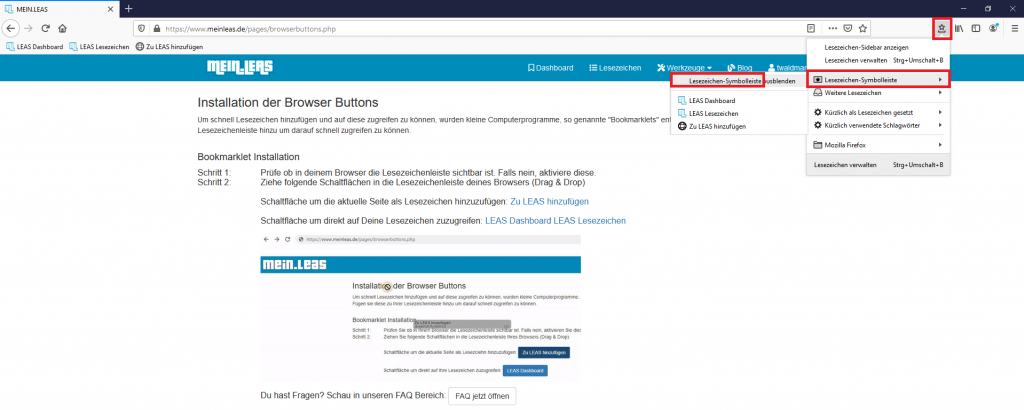 - Klicke auf „Lesezeichen-Symbolleiste einblenden“